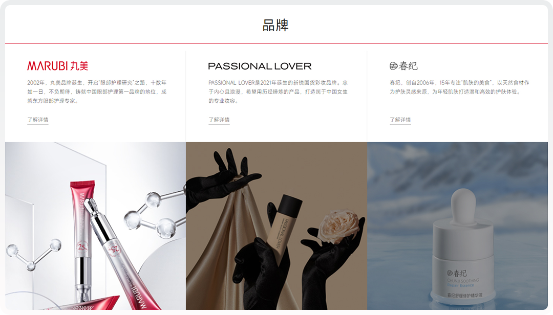 體現(xiàn)丸美整體品牌調(diào)性、展示子品牌